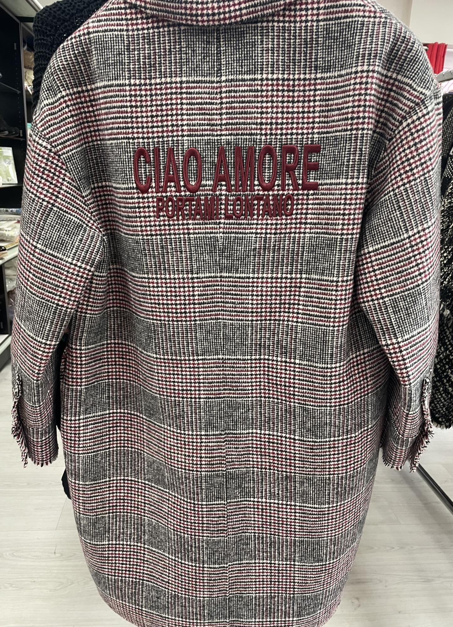 cappotto pied de poul grigio bordeaux con scritta tg. M Patrizia Parma