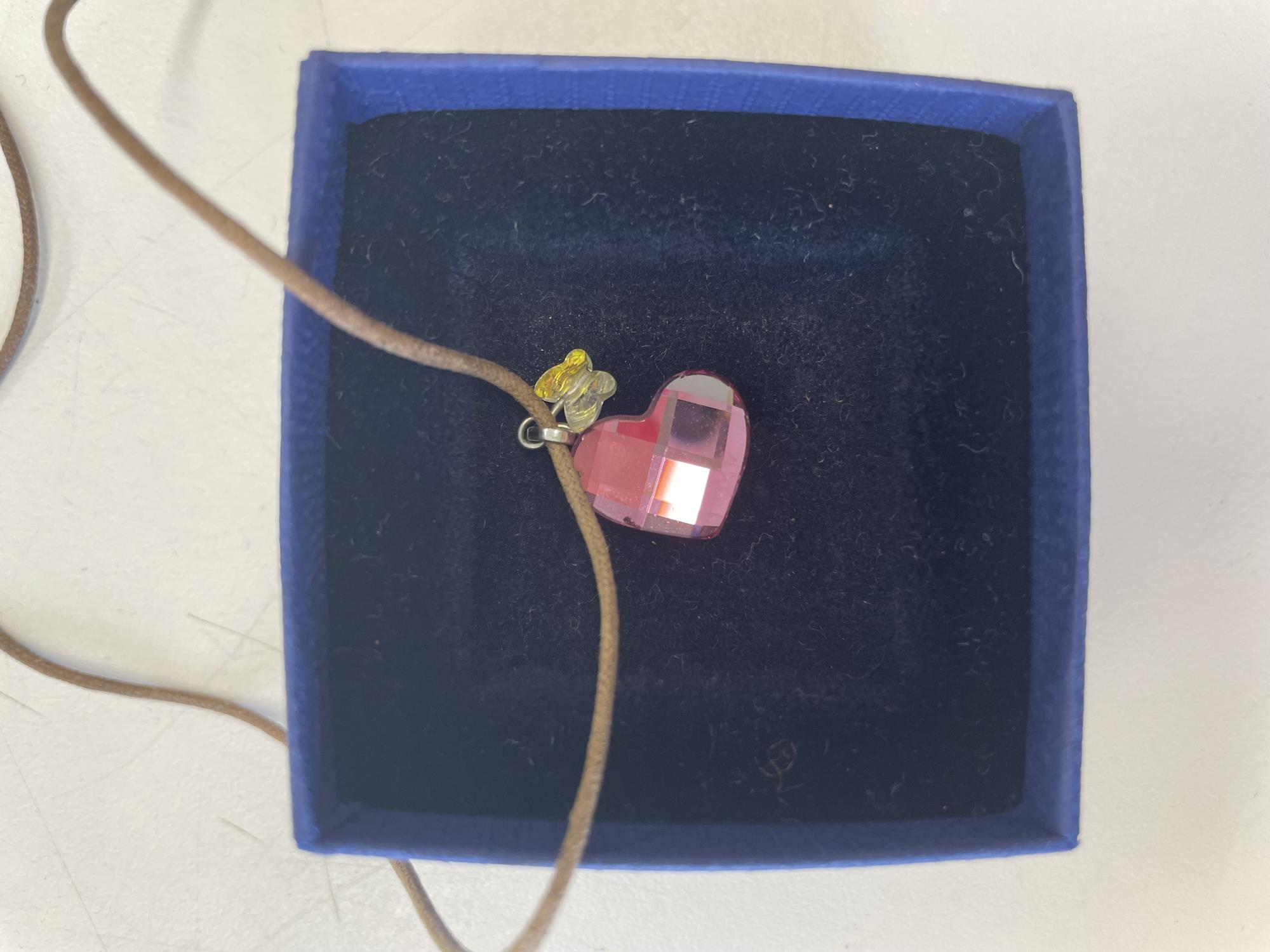 collana in cordino beige con ciondolo cuore rosa Swarovski